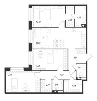 Площадь от 22.7 м2