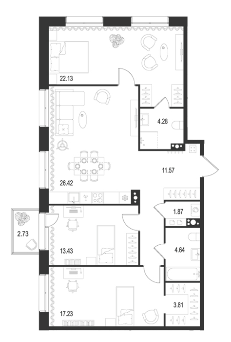 От студий до пентхаусов — можно выбрать формат под любой жизненный сценарий. Есть возможность объединять квартиры и создавать уникальные пространства под себя.