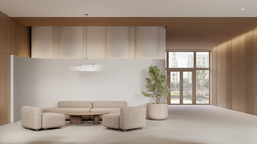 В гранд-лобби проекта будет детская комната в природных оттенках, которые оказывают успокаивающий эффект на человеческую психику. В этом интерьере мы установим мягкую мебель и развивающие элементы из экологически чистых и приятных на ощупь материалов.
